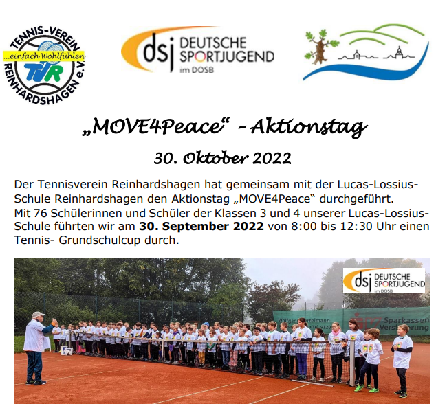 [...] In diesem Jahr verbanden wir diese Veranstaltung mit dem Aktionstag „MOVE4Peace“ der Deutschen Sportjugend. Erstmals konnte auch eine Mannschaft unserer ukrainischen Kinder aus Reinhardshagen teilnehmen.