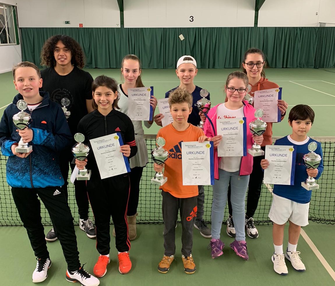 Josef Ureche (Baunatal) bei den Junioren, sowie Zoe Ströh (TC 31 Kassel), Elaph Kadhim (Vellmar), Pelin Sari (BW Kassel) und Viktoria Jadwiszczok (Baunatal) bei den Juniorinnen die Bezirkstitel.