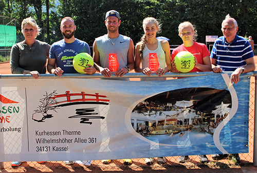 Die Finalisten der nordhessischen Tennismeisterschaften um die Kurhessen-Therme-Cups bei Blau-Weiß Kassel mit von links: