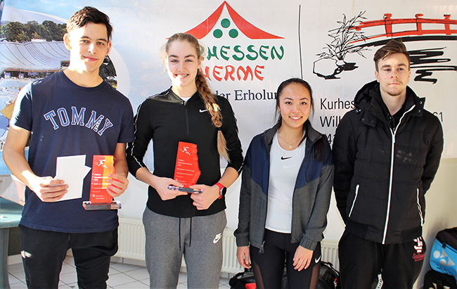 Die Finalisten der nordhessischen Tennismeisterschaften um den Kurhessen-Therme-Cup mit von links: Can Franke, Pauline Bruns, Jenny Nguyen und Markus Wunder. (Foto wm)