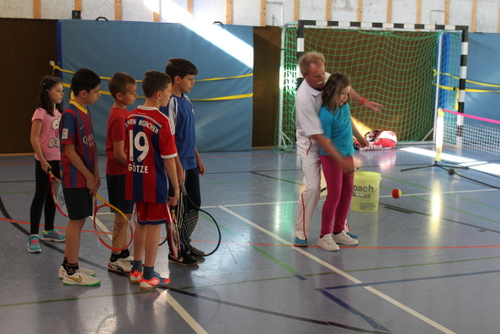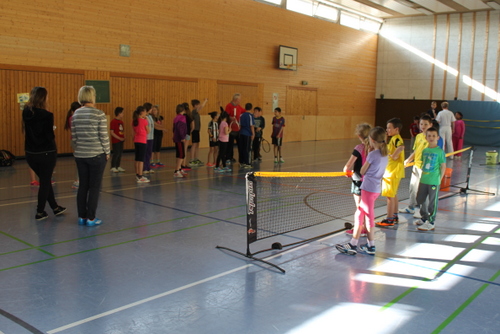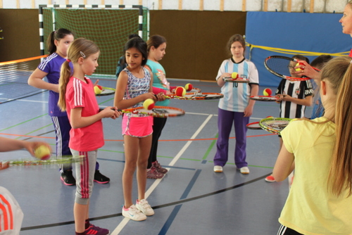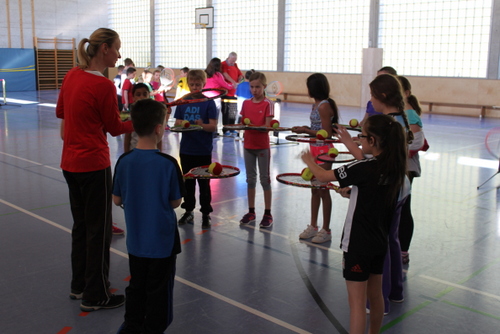 Am Nachmittag hatten dann alle Schüler, sowie deren Eltern aber auch darüber hinaus Interessierte die Gelegenheit unter Anleitung von Trainern auf Sandplätzen das Tennisspielen auszuprobieren und bei diesem Schnuppertag Spaß bei dieser Sportart zu bekommen.